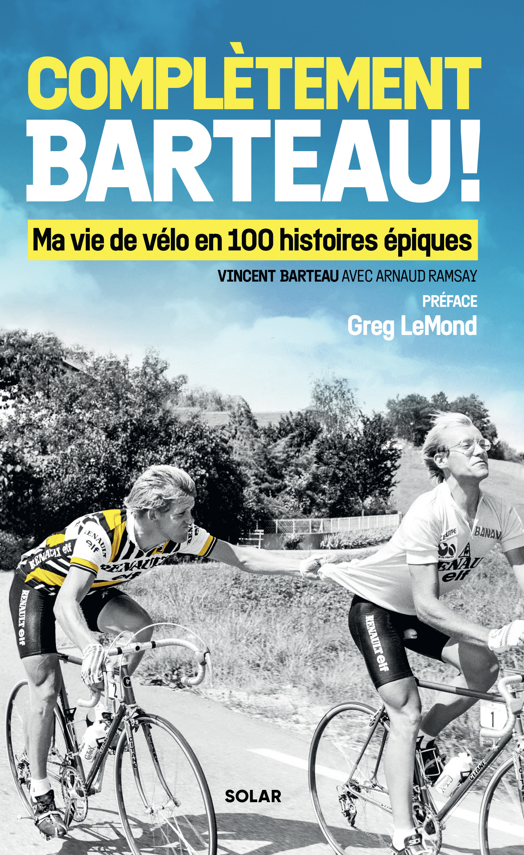 « Si je ne m’arrête pas pour pisser, je ne prends jamais le maillot jaune ». Sacré personnage que ce Vincent Barteau, qui a enfilé par hasard le fameux paletot lors de la Grande Boucle 1984, et l’a défendu pendant douze étapes. Quarante ans après ce coup d’éclat, l’ex-coéquipier fantaisiste de Laurent Fignon se raconte dans un récit à son image, intitulé « Complètement Barteau », et sorti aux éditions Solar. Il y raconte l’envers de son sport, de ses relations avec les plus grands coursiers (Fignon, Hinault, Lemond) à ses réflexions sur l’évolution du peloton actuel, en passant par ses aventures toujours singulières. Un témoignage authentique, joyeux de celui qui semble avoir roulé aux sentiments pendant toute sa carrière. Car, fou, Vincent Barteau l’était sans doute, fou de vélo, ça c’est sûr.