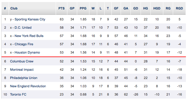 En barrage, on a donc droit à un joli Chicago Fire vs Dynamo Houston. Deux bonnes équipes de MLS. Et ce sont les Texans de Houston qui s’imposent 2-1 au terme d’un match à suspense. Houston peut donc oublier son terrible début de saison. Chicago est éliminé malgré une saison honorable ! Déception concernant Philadelphie auteur d’une saison quelconque et qui ne s’est jamais remis du départ de Sébastien « warrior » Le Toux. La réciproque est aussi vraie, le Français n’ayant marqué qu’un seul but pour les Red Bulls, mais on ne peut pas mettre Le Toux à l’égout, avec de nombreuses passes décisives.